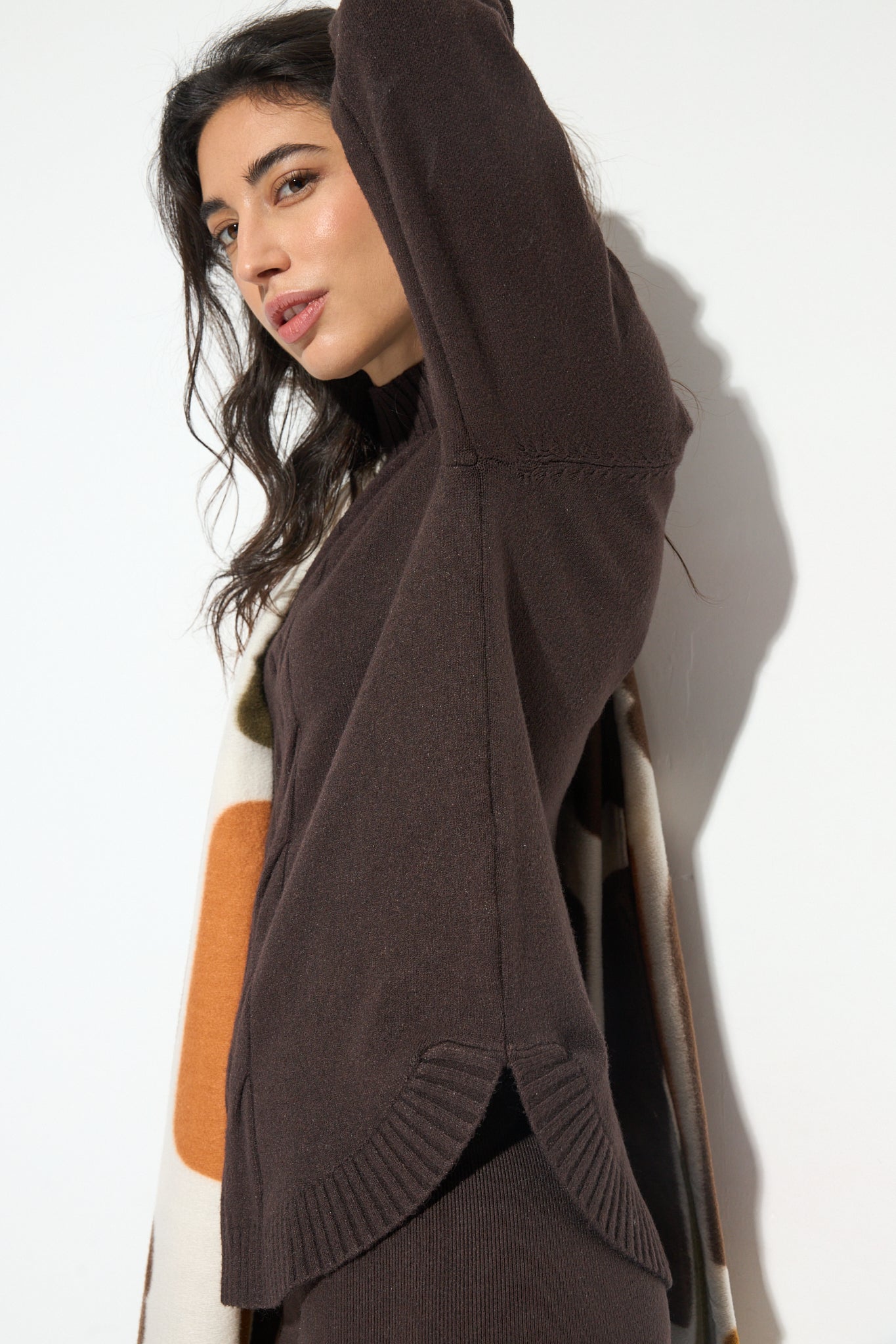 Jersey de cuello perkins con detalle de ochos vesticales y bajo redondeadol. Un jersey básico, fácil de combinar y que nos encanta por cada uno de sus detalles.