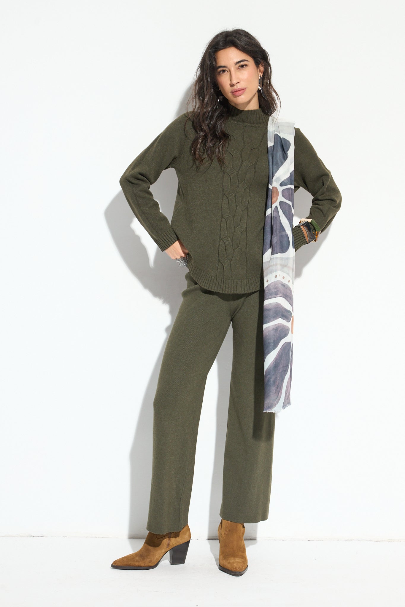 Jersey de cuello perkins con detalle de ochos vesticales y bajo redondeadol. Un jersey básico, fácil de combinar y que nos encanta por cada uno de sus detalles.