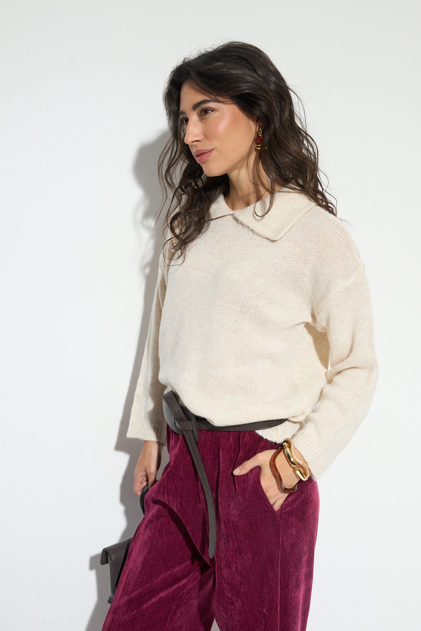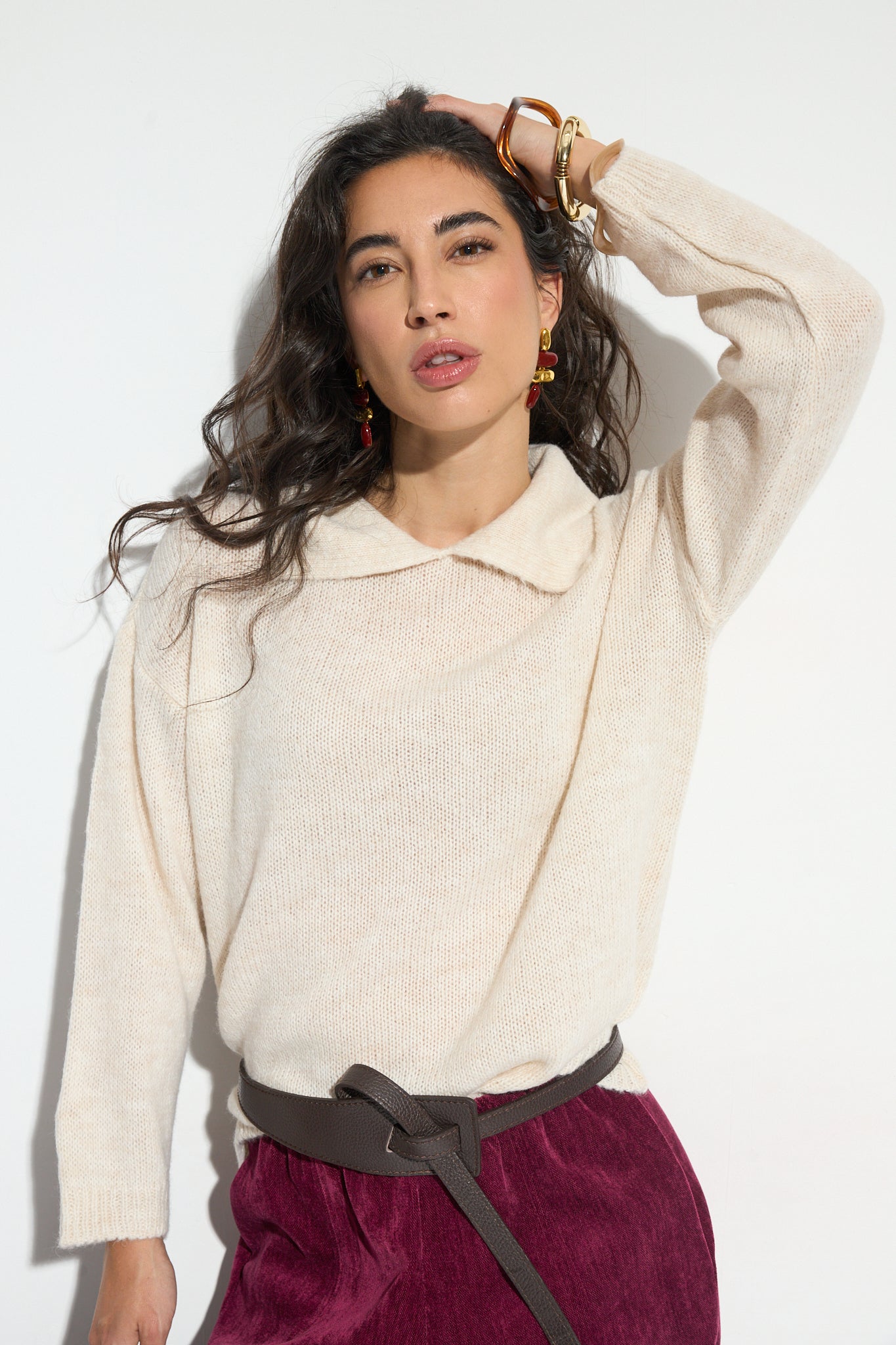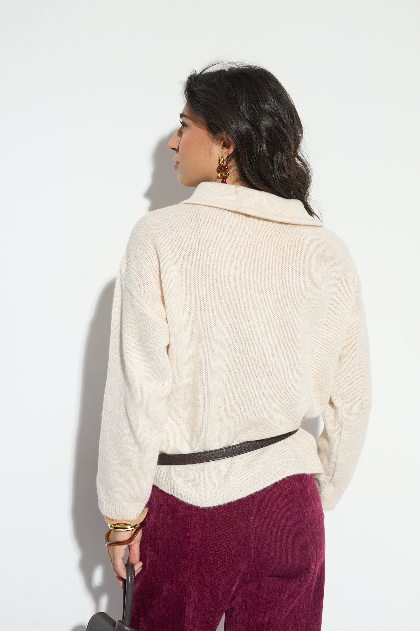 Un jersey sencillo a la vez que muy original. Nos encanta el estilo que aporta el cuello de solapas, ¿a ti no?