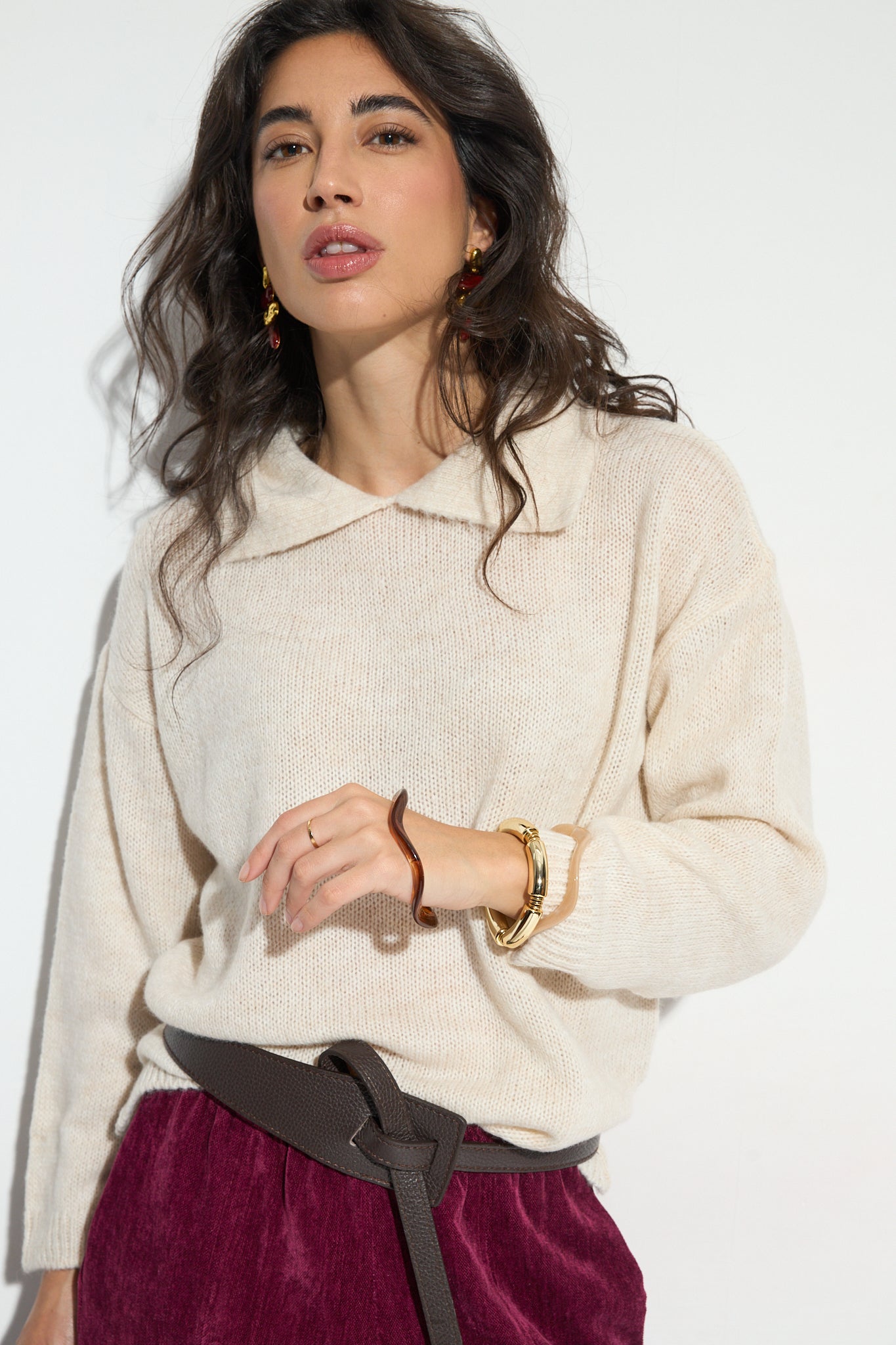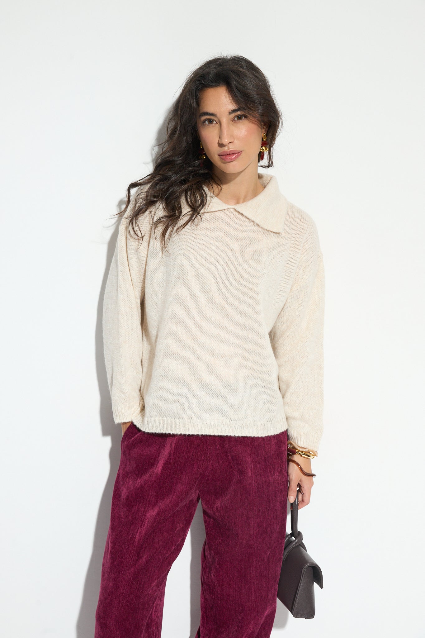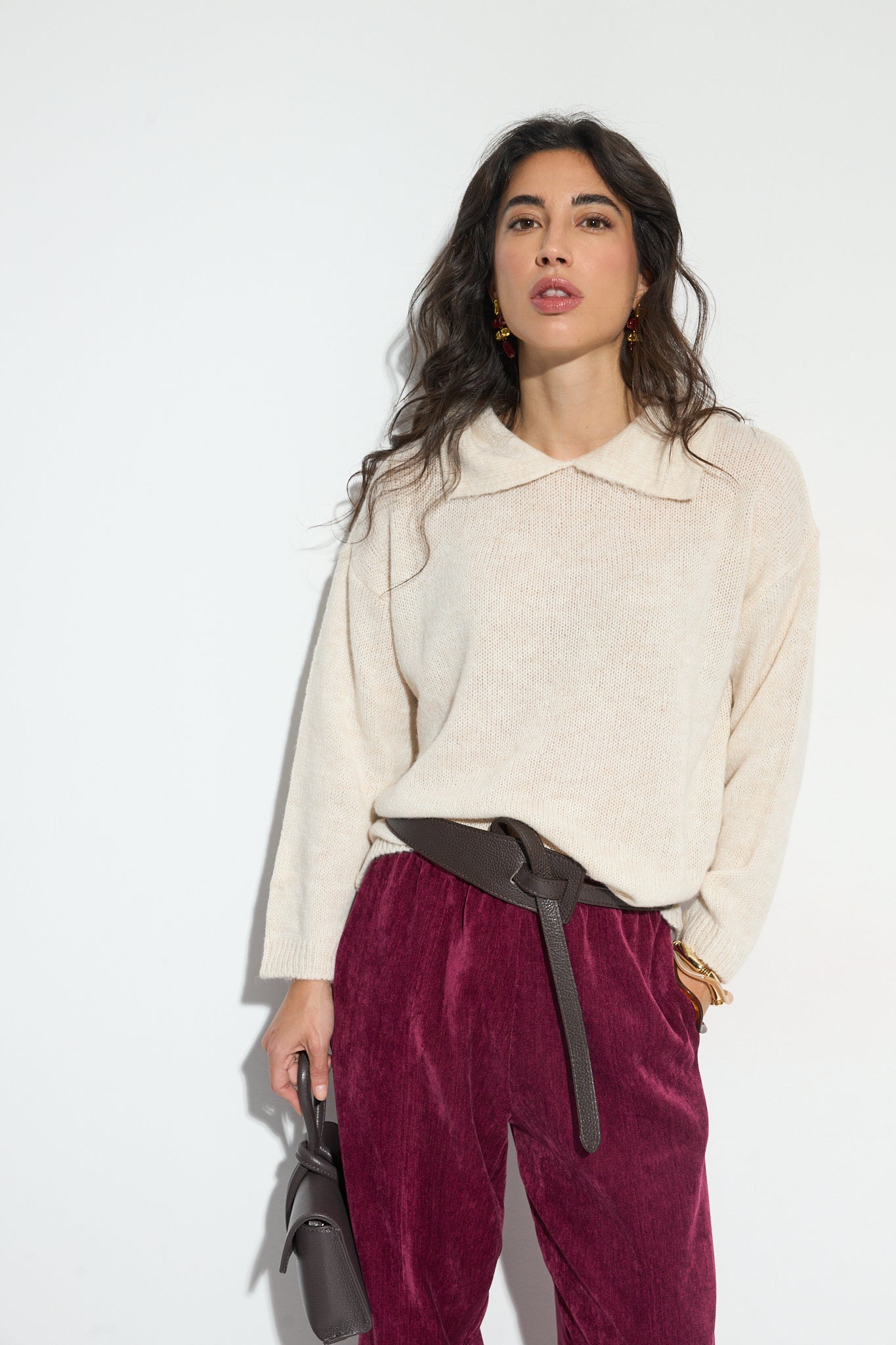 Un jersey sencillo a la vez que muy original. Nos encanta el estilo que aporta el cuello de solapas, ¿a ti no?