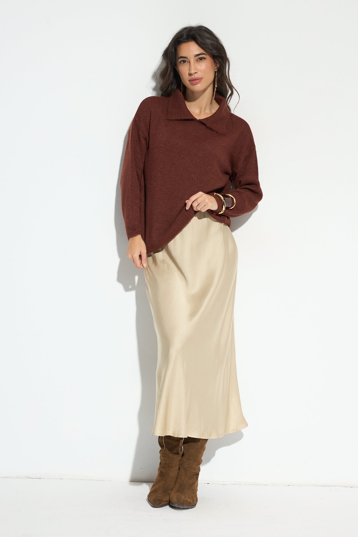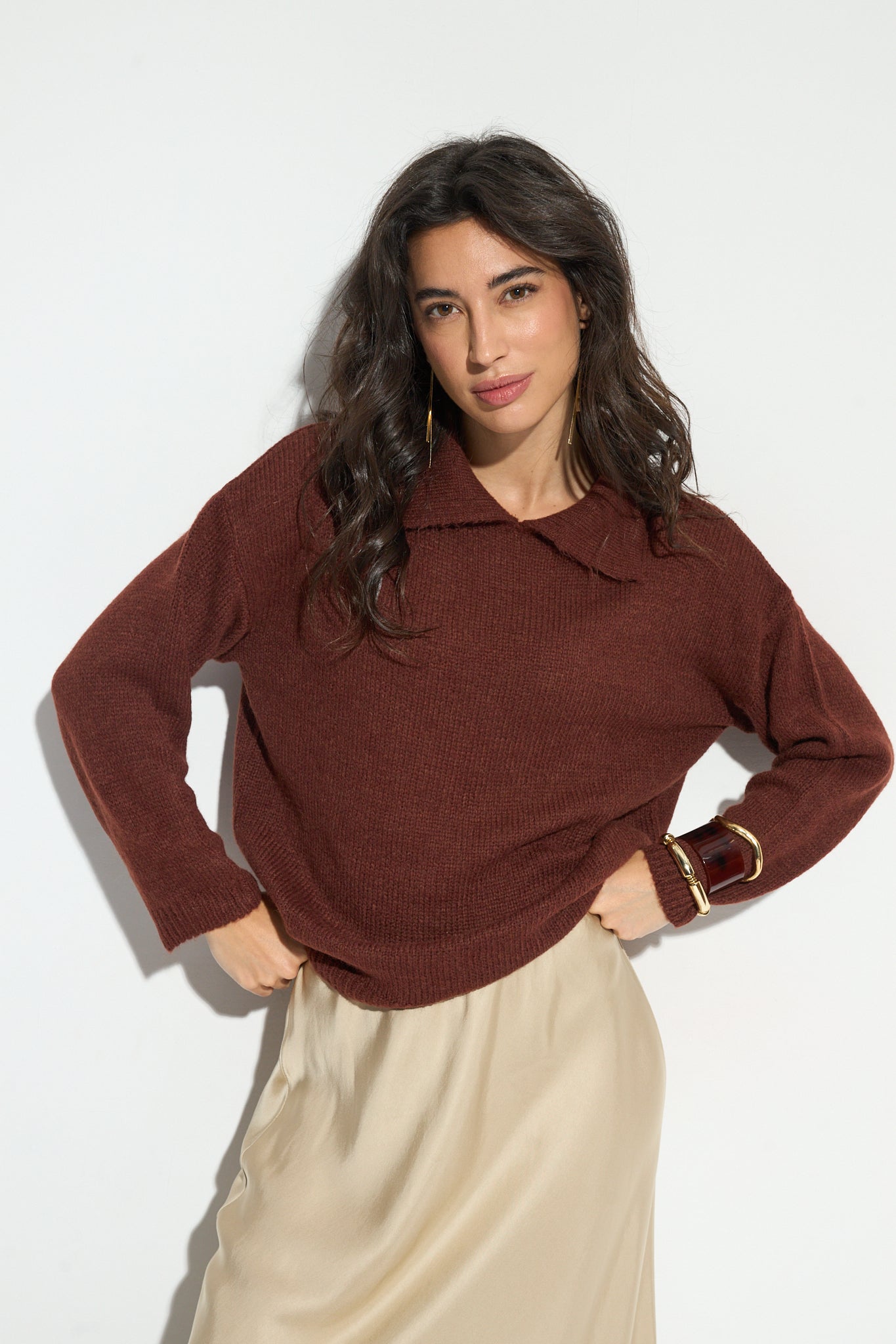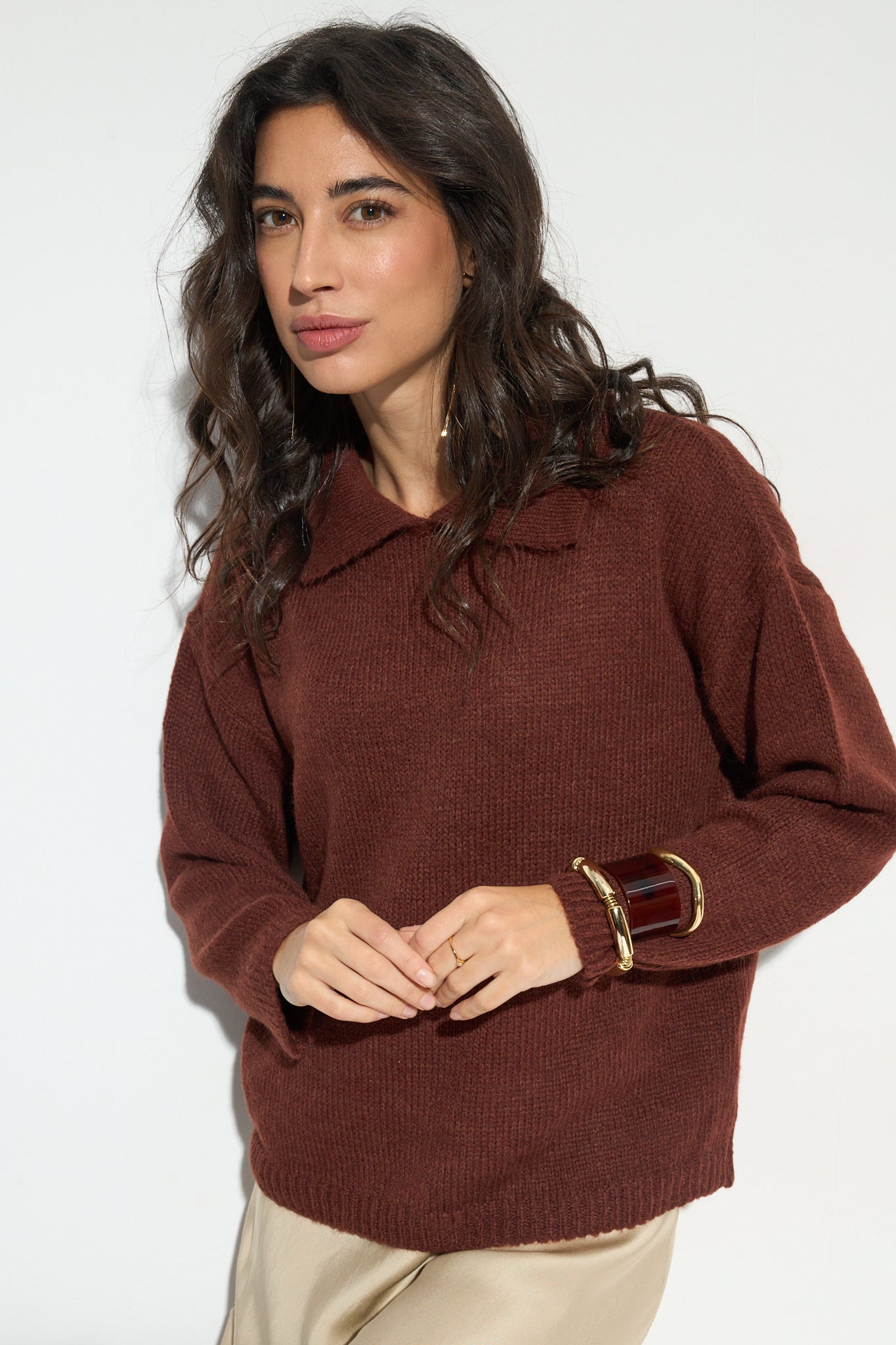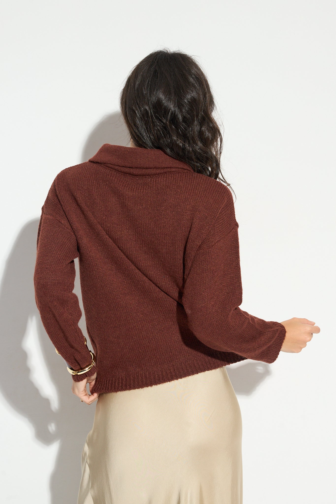 Un jersey sencillo a la vez que muy original. Nos encanta el estilo que aporta el cuello de solapas, ¿a ti no?