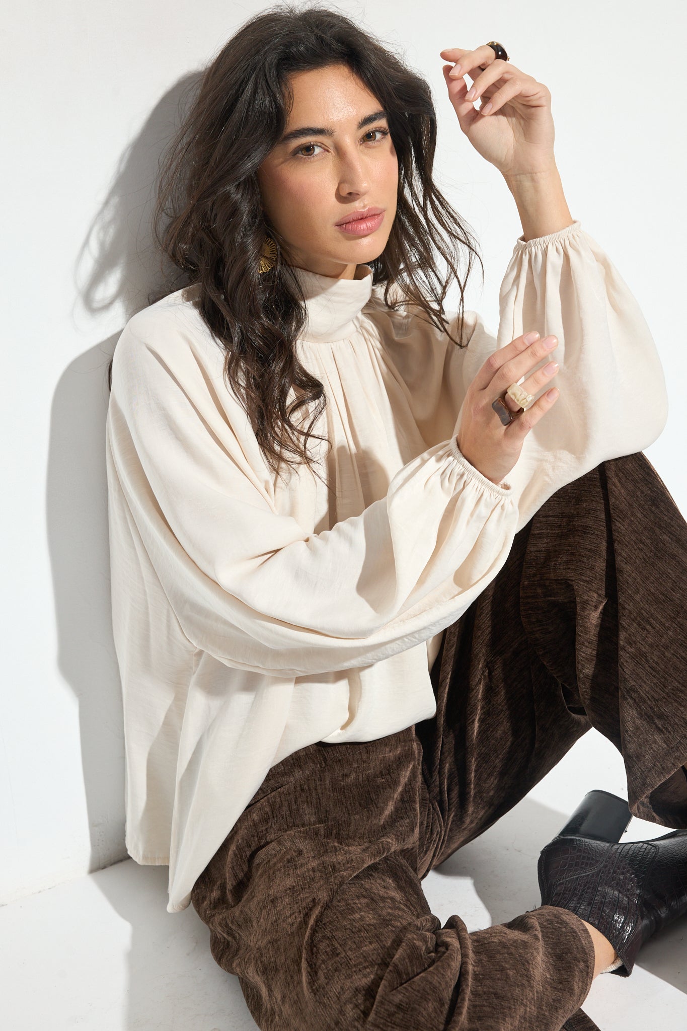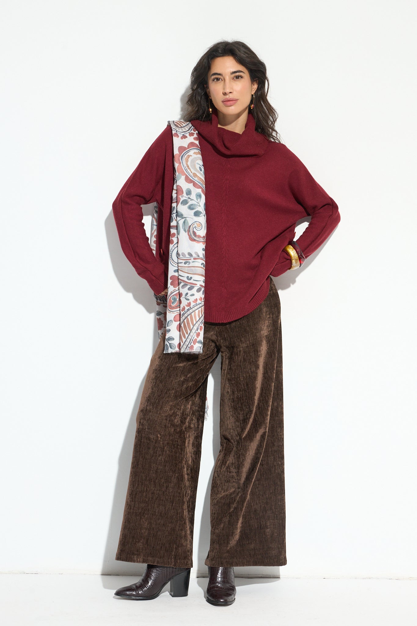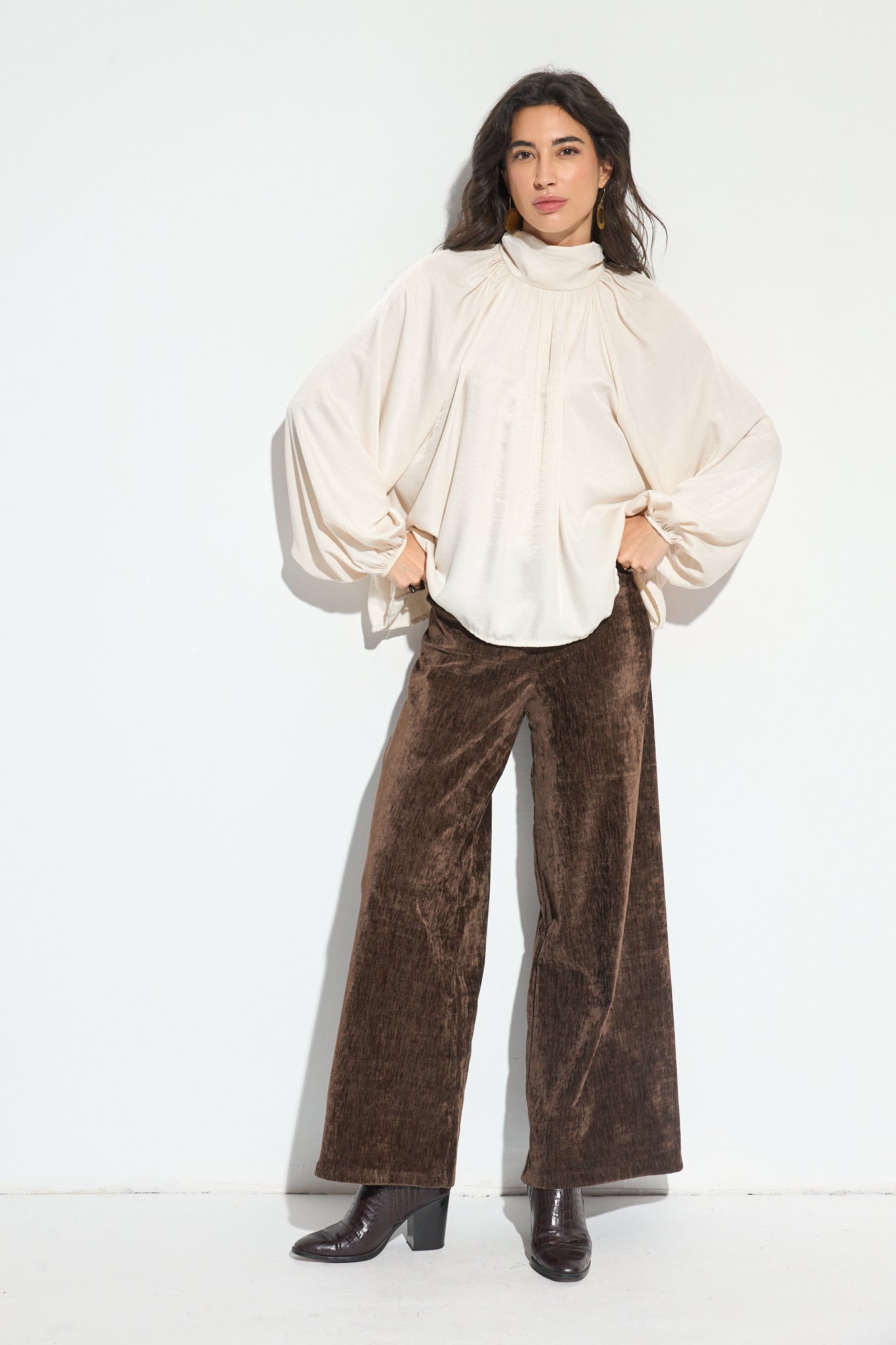 Este pantalón palazzo tipo terciopelo de color marrón con goma en la cintura es un fondo de armario que no te querrás quitar.