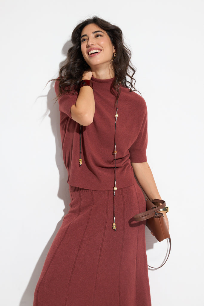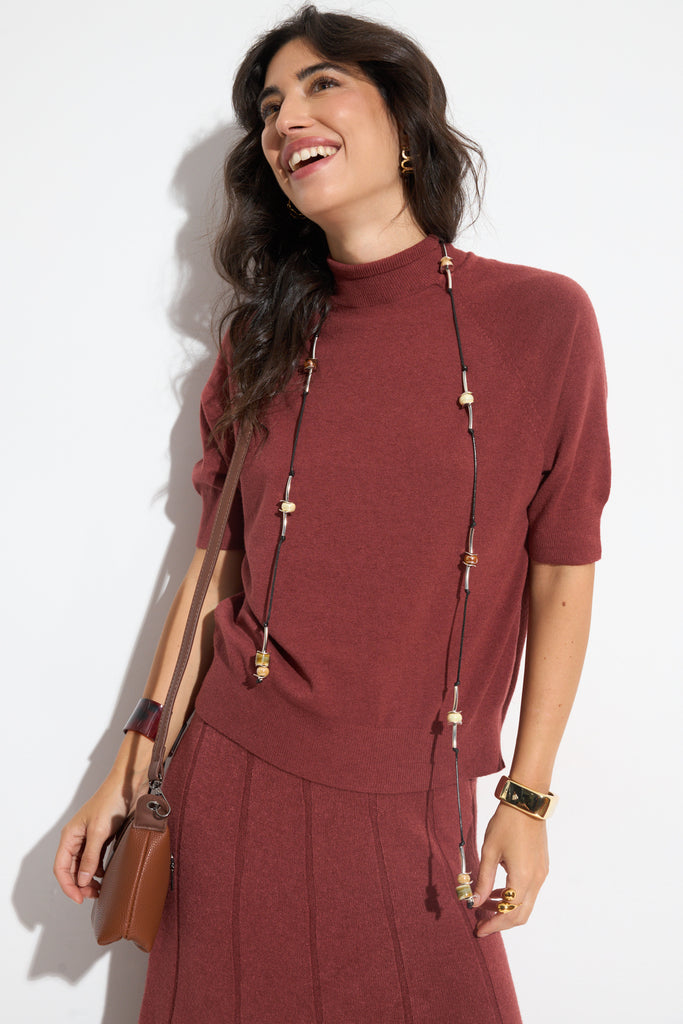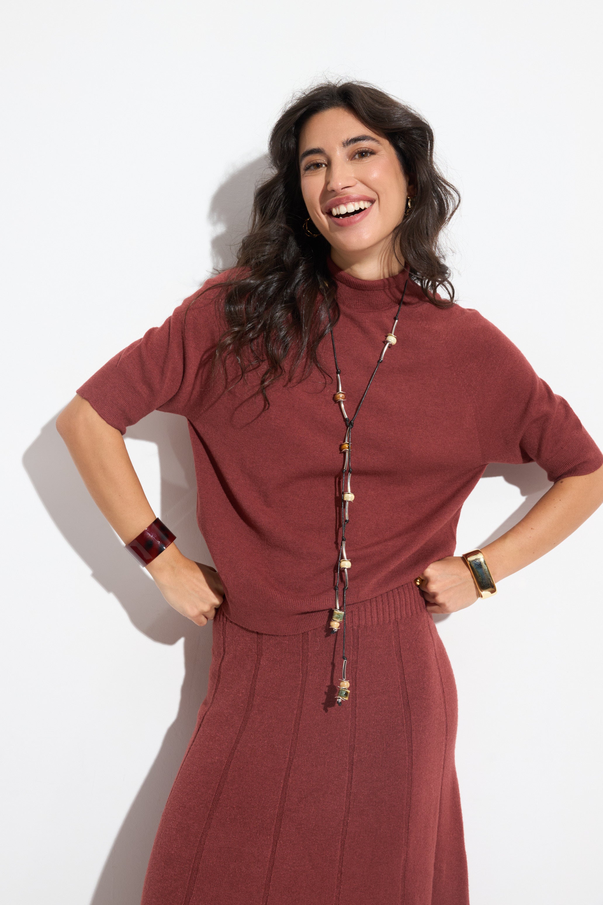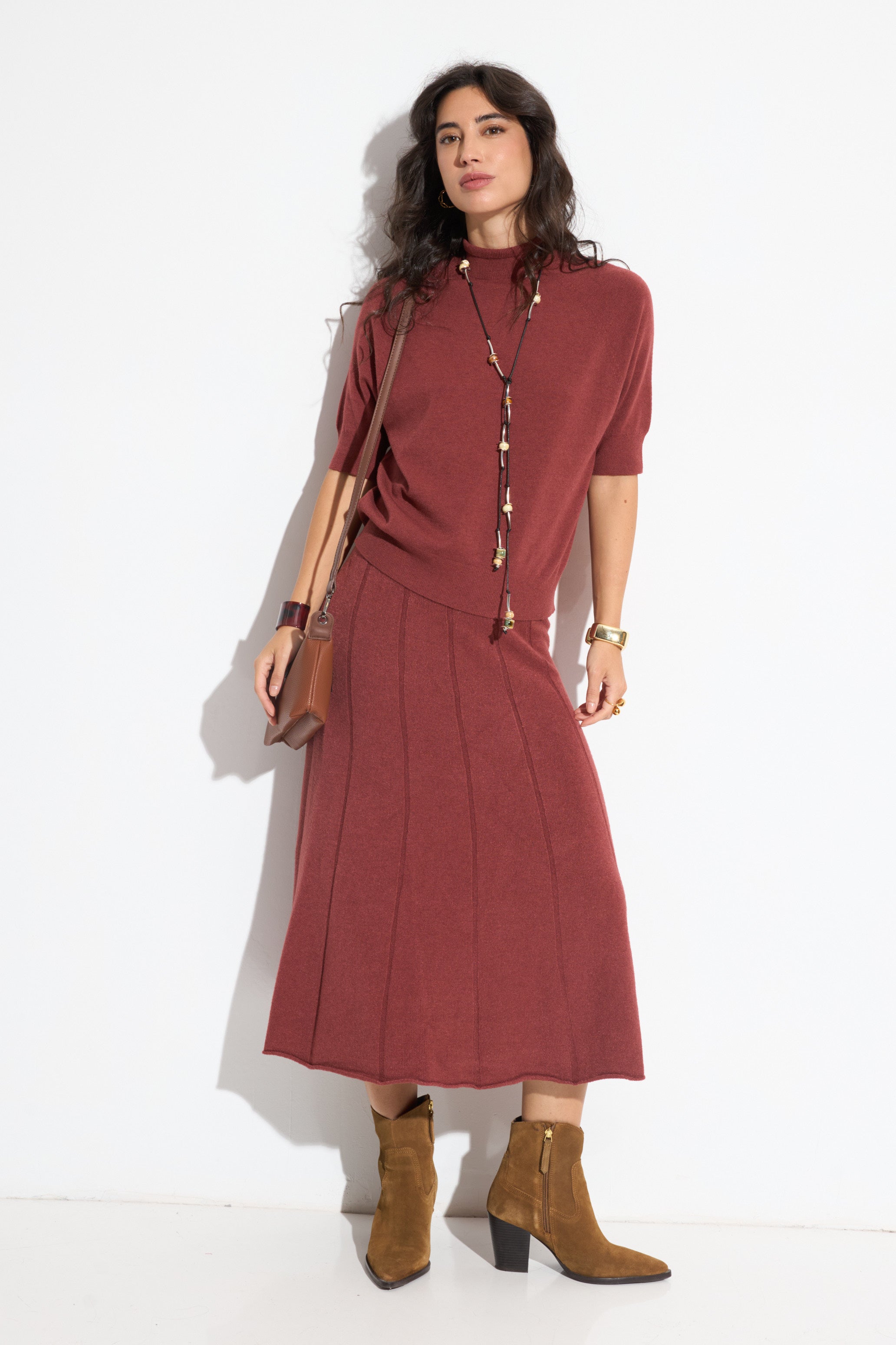 Un jersey teja básio sin costuras con cuello perkins y manga francesa. Un fondo de armario de tejido suave y confortable que te encantará.